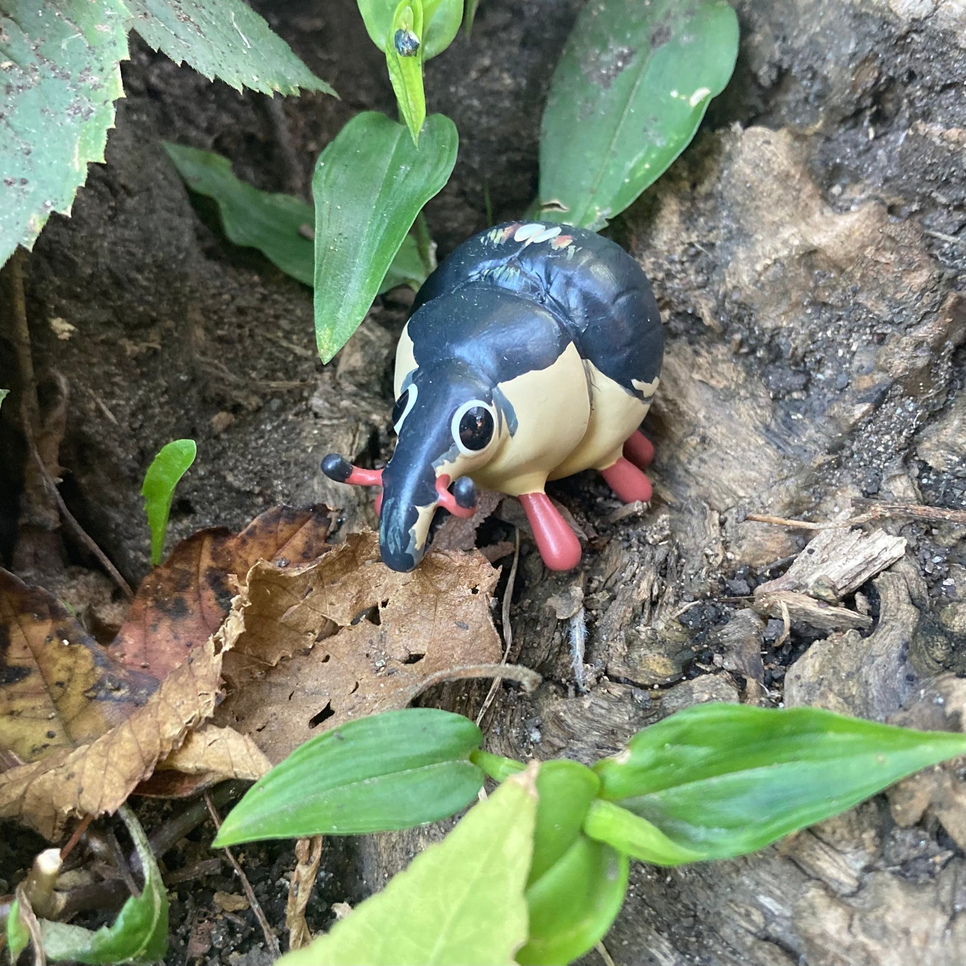 Hand-sculpted weevil sculpture made with polymer clay, hand-painted with acrylic paint and sealed with glossy and matte polyurethane.